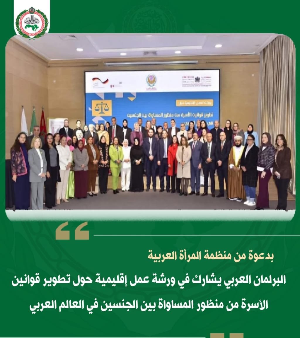 بدعوة من منظمة المرأة العربية …البرلمان العربي يشارك في ورشة عمل إقليمية حول تطوير قوانين الاسرة من منظور المساواة بين الجنسين في العالم العربي