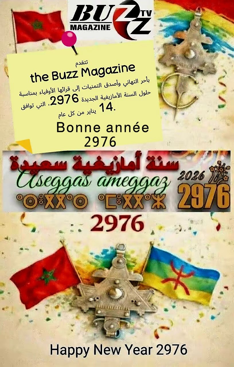 تتقدم the Buzz Magazine بأحر التهاني وأصدق التمنيات إلى قرائها الأوفياء بمناسبة حلول السنة الأمازيغية الجديدة 2976، التي توافق 14 يناير من كل عام.