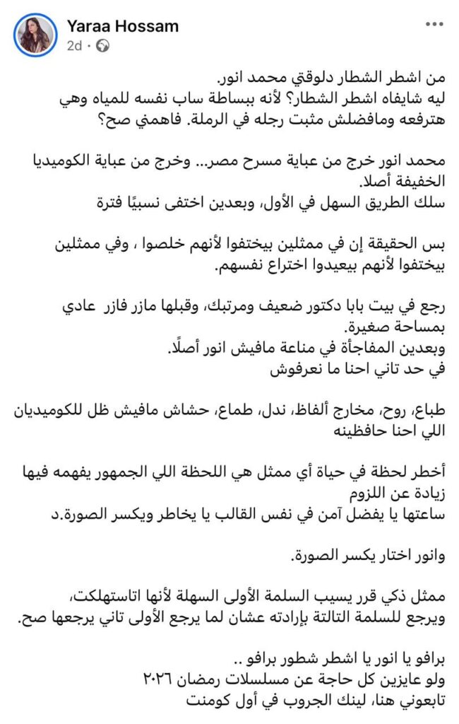 وتداول المتابعون تعليقات تشيد بخروجه من إطار الكوميديا المعتاد، مؤكدين أنه اختار أن يخاطر ويكسر الصورة الذهنية المرتبطة به منذ سنوات، ليظهر بشخصية أكثر هدوءًا وعمقًا.