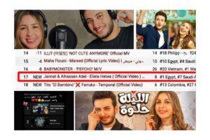 وتقدم دويتو “الليلة حلوة” بثبات إلى صدارة قائمة الموسيقى الرائجة، ليتفوق على أحدث أعمال ويجز ورامي جمال وحمزة نمرة وبهاء سلطان، ويقتنص المركز الأول في ترند مصر وعدد من الدول العربية، كما حقق العمل إنجازا لافتا بحصوله على المركز السابع عشر عالميا، ليترسخ كأحد أبرز الإصدارات الغنائية المتداولة ويتصدر سباق المنافسة مع كبار نجوم الطرب.