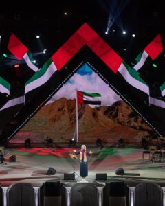 “هذه ليلة لن أنساها، والأولى لي على مدرّج خورفكان العريق، ومحبّتكم كانت أعظم هدية. أشعر بفخر كبير وأنا أحتفل معكم بعيد الاتحاد لدولة الإمارات… وجودكم هو طاقتي، وغنائي لكم هو امتنانٌ وانتماء.”