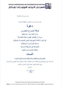 «المشاركة في قرطاج شرف كبير، وتمثل تقديرًا لكل فنان مصري يؤمن بأن المسرح رسالة ووعي وجمال. نسعى لتقديم عرض يليق باسم مصر وجمهورها العربي.»
