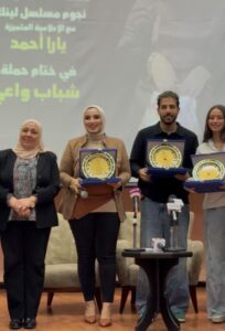 واختُتمت الفعالية بتكريم طلاب الحملة وتسليمهم شهادات تقدير، ثم تكريم نجوم مسلسل “لينك” بدروع خاصة احتفاءً بنجاحهم الكبير وتفاعل الجمهور مع العمل، الذي أصبح واحدًا من أبرز الأعمال الشبابية اللافتة هذا العام.