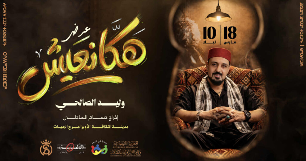 ​يضم عرض “هكا نعيش” أجمل ما يتضمنه الريبرتوار الفني لوليد الصالحي وأبرز نجاحاته، برؤية موسيقية وتصور إخراجي معاصر أشرف عليه المخرج حسام الساحلي.
