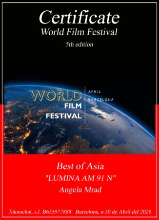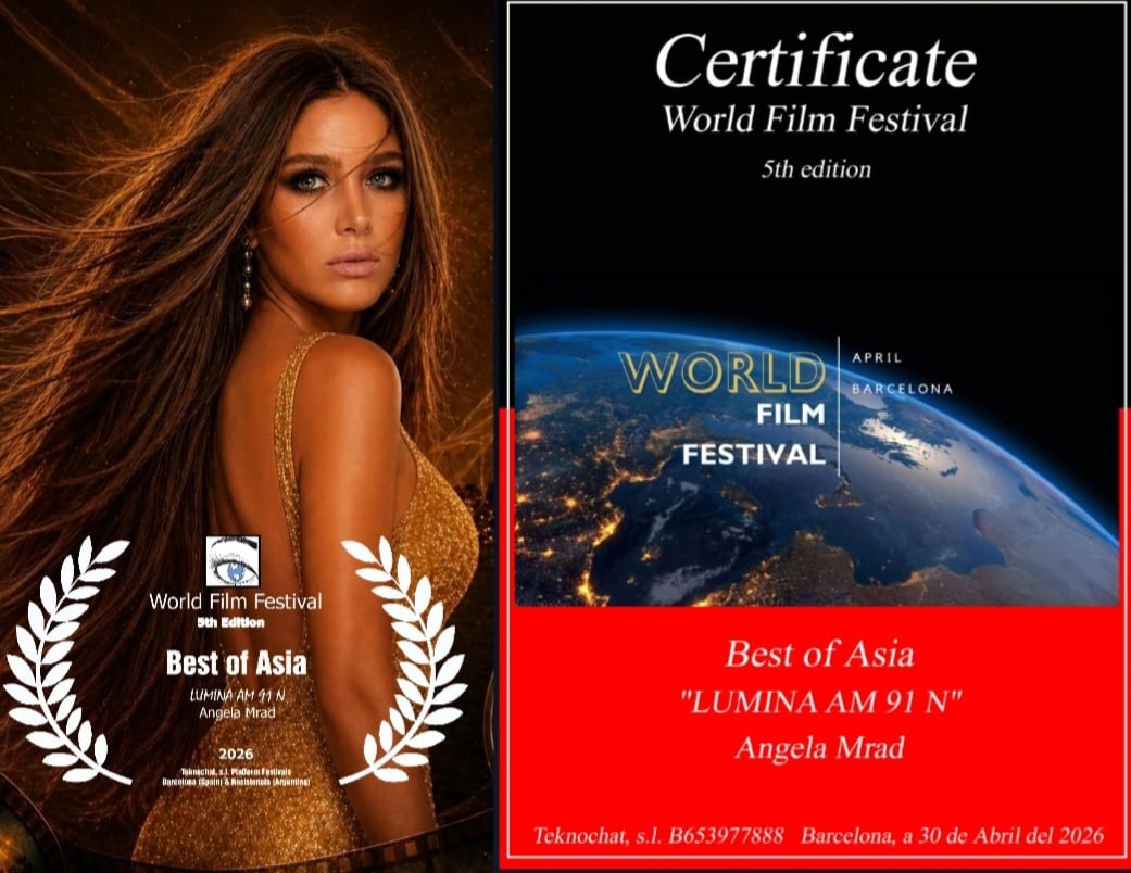 In a new cinematic achievement adding to her international journey, Lebanese filmmaker and writer Dr. Angela Mrad has announced that her film LUMINA AM 91N has been awarded the BEST OF ASIA prize at the World Film Festival – 5th Edition, held in Barcelona, Spain